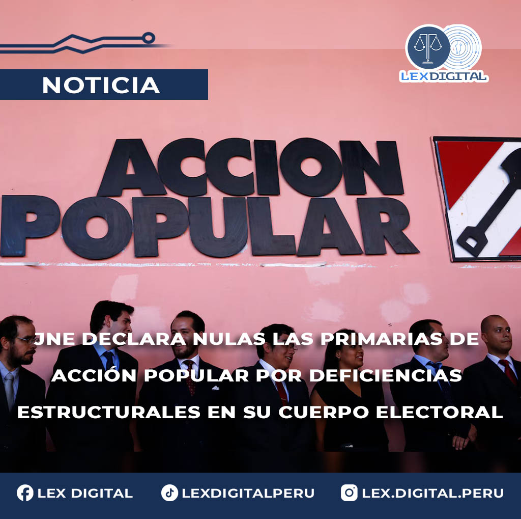El Jurado Nacional de Elecciones ha emitido la Resolución N° 0745-2025-JNE, mediante la cual declara nulas en su totalidad las elecciones primarias realizadas por la organización política Acción Popular en su modalidad de delegados el 7 de diciembre de 2025. La decisión se sustenta en la detección de «vicios sustanciales» que comprometieron la integridad del proceso democrático interno y vulneraron el derecho fundamental de participación política de los afiliados.​
