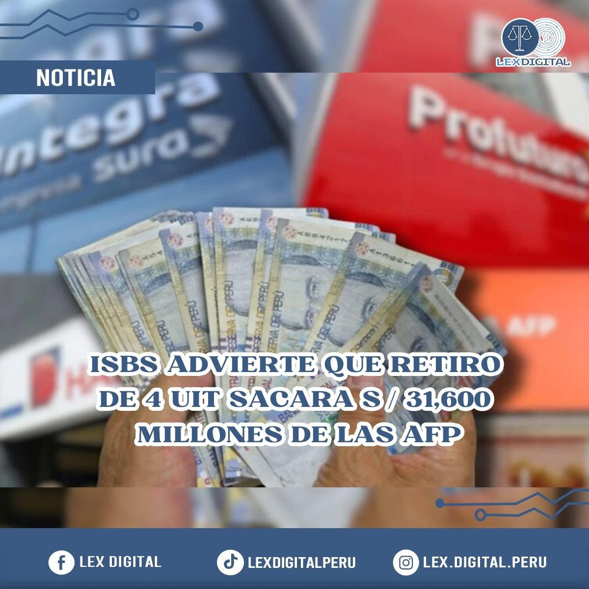 La Superintendencia de Banca, Seguros y AFP (SBS) advirtió que el octavo retiro de fondos de las Administradoras de Fondos de Pensiones (AFP), recientemente aprobado en la Comisión de Economía del Congreso, implicará la salida de aproximadamente S/ 31,600 millones. Este monto representa el 27,5% del total administrado por el sistema privado de pensiones.
